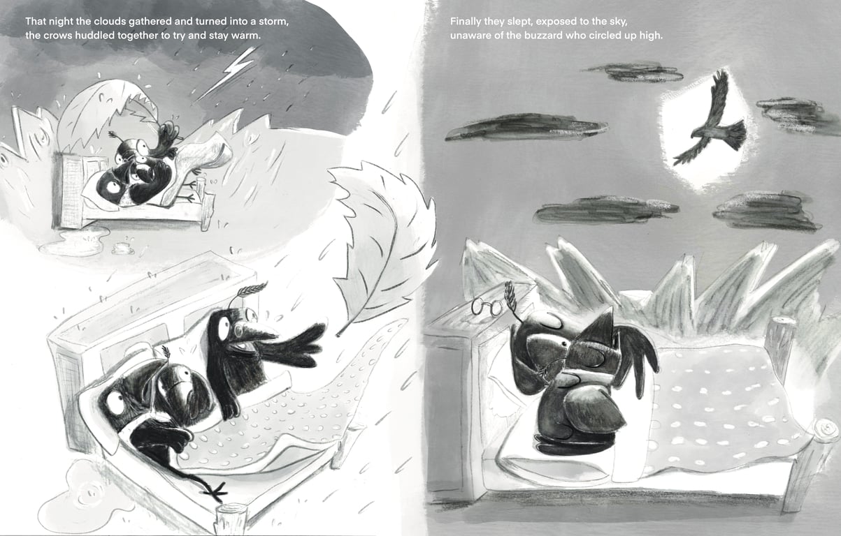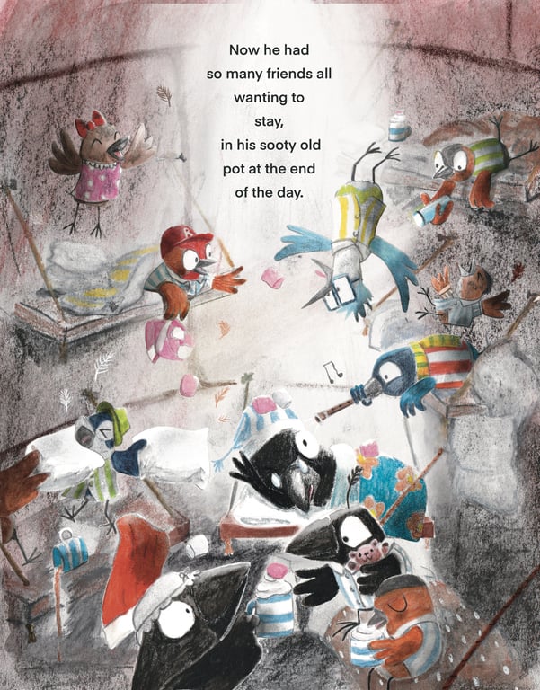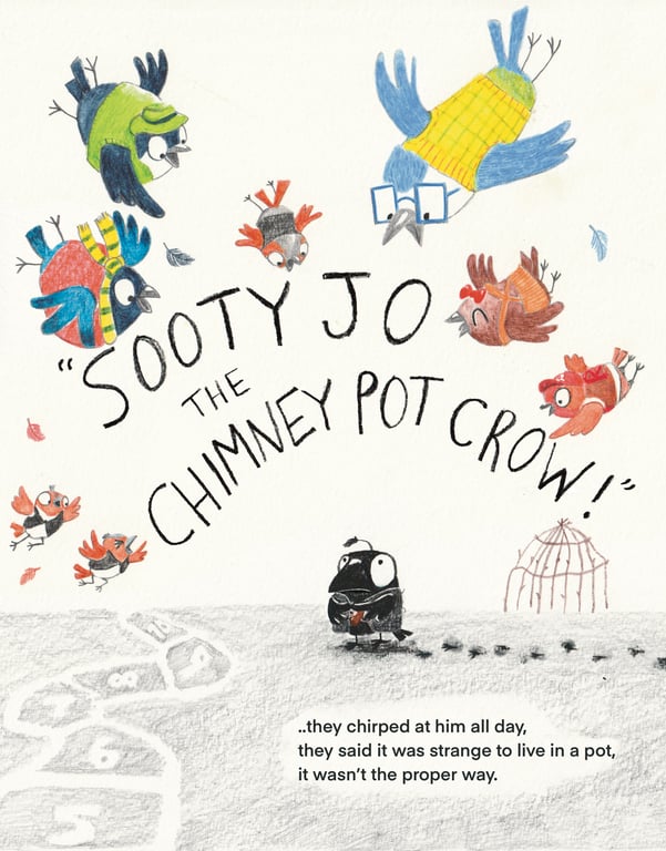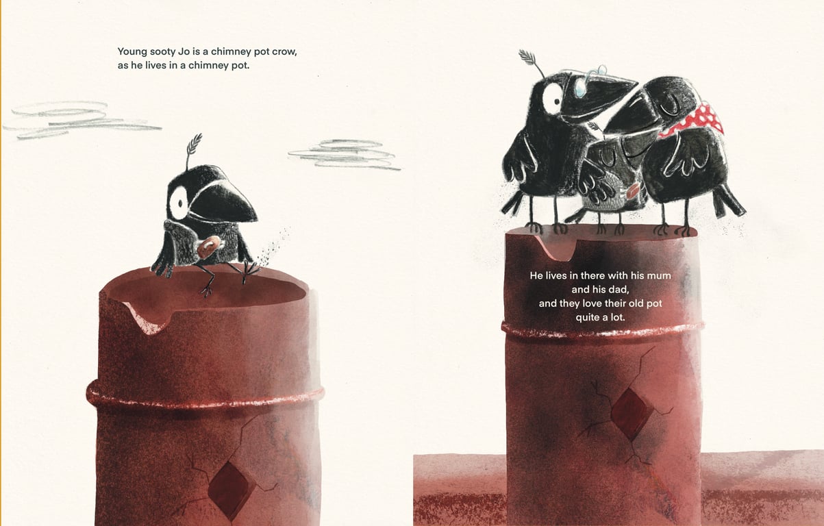 Inspired by a family of crows living in our chimney pot, I created a story about a sooty crow called Jo who loves his sooty home but when he’s teased by the other birds for living in a pot, he makes his family to move to a tree. Jo realises in the end, that the best home is where the heart is, even if it is a bit sooty! A story about being true to who you are and where you come from. - How were your illustrations used?