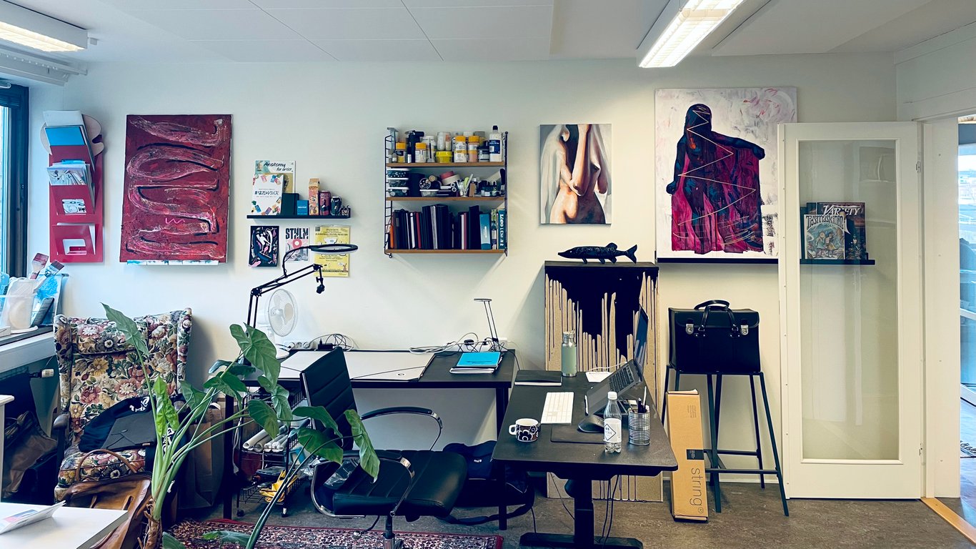 I share a studio with eight other creatives near Stigbergstorget in Majorna, Gothenburg.